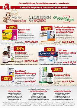 Alle Angebote gültig bis 31.03.2026. Irrtum vorbehalten. Abgabe nur in haushaltsüblichen Mengen. Die Angebote gelten nicht während des Notdienstes.